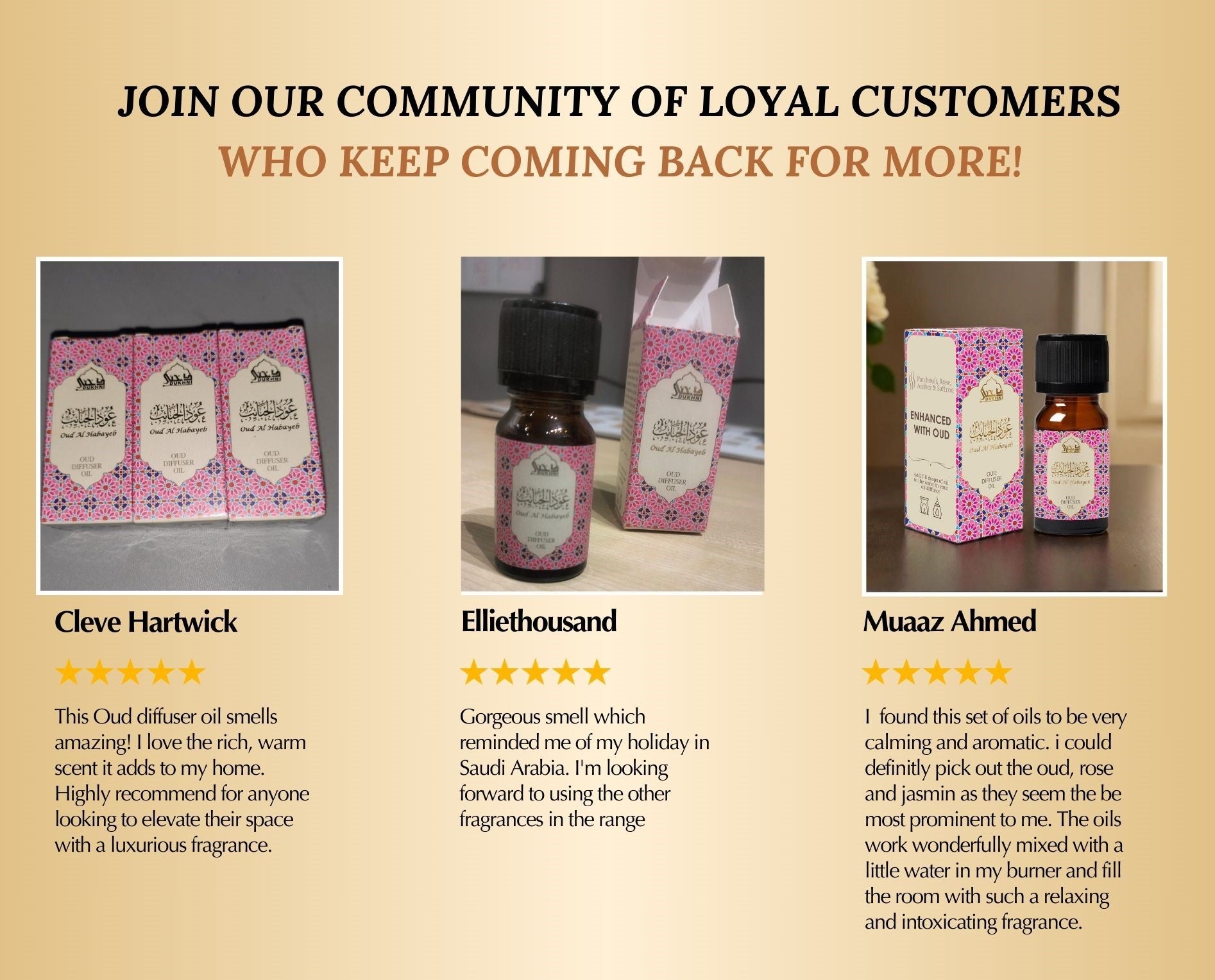 Experience luxury aromatherapy with our pure Oud diffuser oils. Add to a diffuser oil burner or a humidifier to create a serene, mosque-like atmosphere in your home—an amazing gift for any occasion.