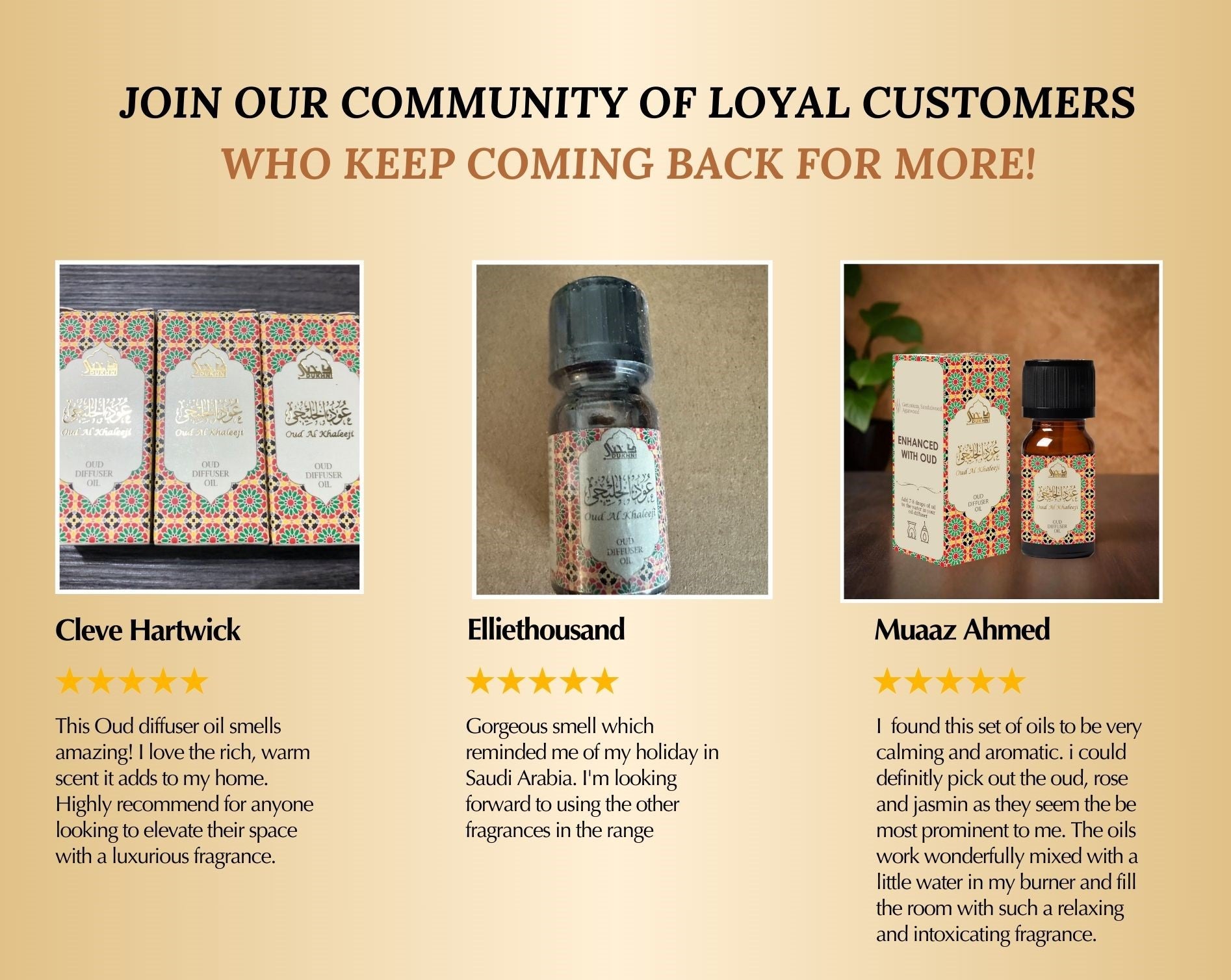 Oud Al Khaleeji Oil Blend | 3 x 10ml Arabic Oil for Diffuser & Humidifier