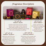 Bakhoor Sheeba: Uplifting sweet fruity top notes with earthy, woody, and nutty undertones.