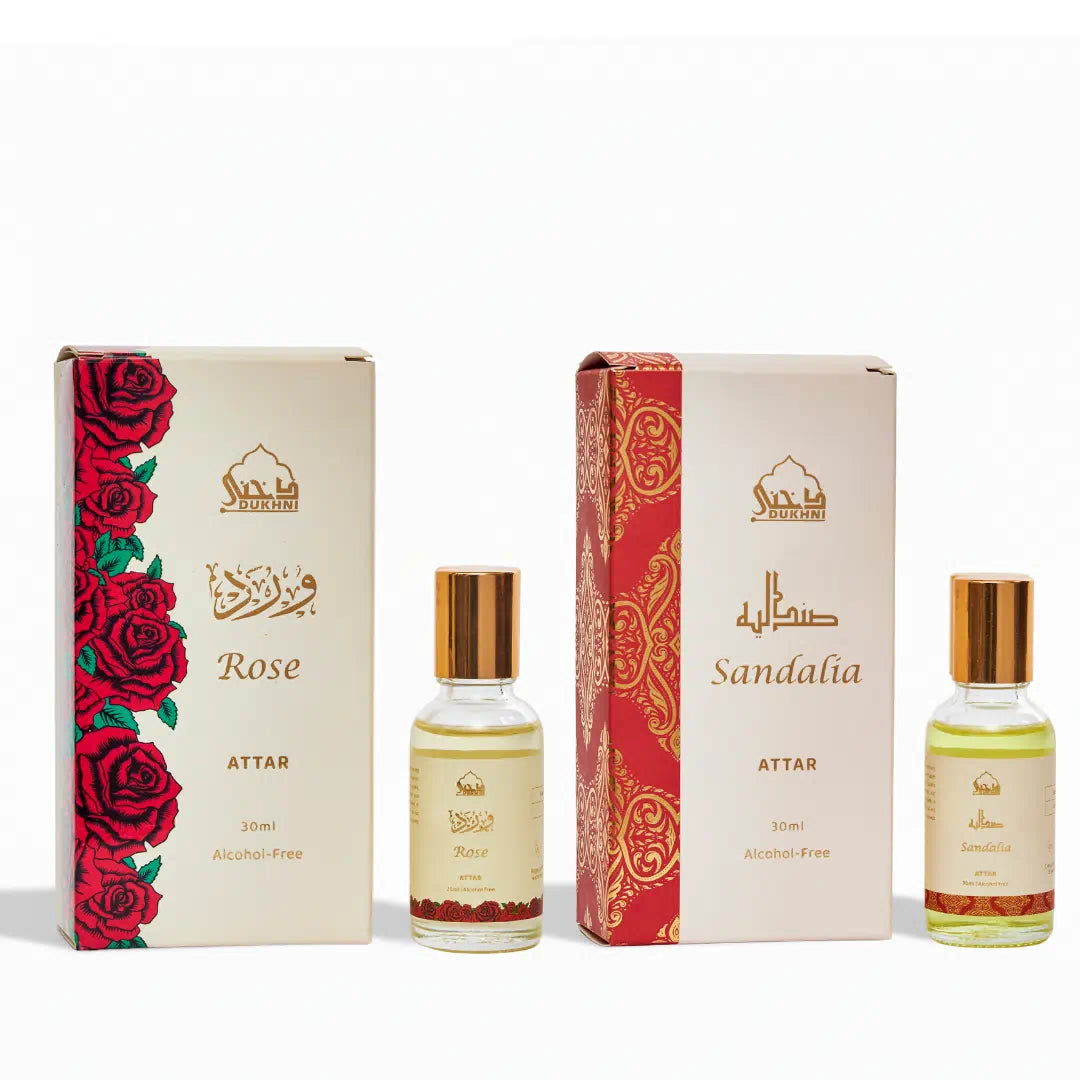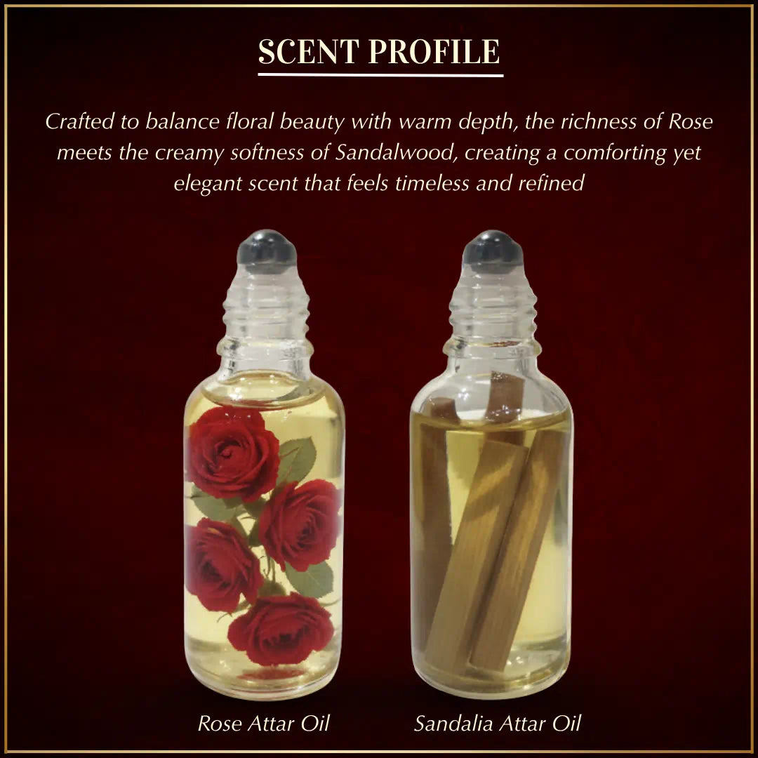 Experience Dukhni’s Sandalia & Rose Attar Set — a timeless pairing that blends creamy sandalwood with the soft floral charm of rose. Luxurious, long-lasting, and effortlessly elegant, this duo brings warmth, balance, and understated sophistication to everyday wear and special moments alike.