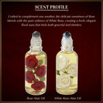 Scent profile: Two refined rose blends — the gentle, dewy freshness of White Rose intertwined with the rich, timeless allure of Rose. Together, they create a clean and graceful fragrance that lingers beautifully on the skin
