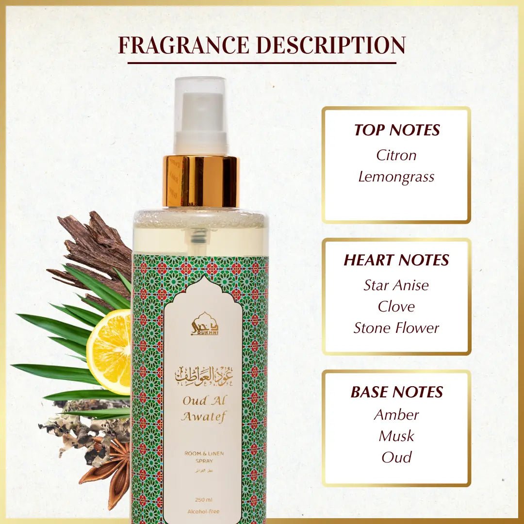 Experience the timeless luxury of Arabian oud in an effortless spray. Simply spritz to instantly fill your space with the authentic warmth and depth of oud. It’s the perfect blend of heritage and ease, letting you enjoy the magic of this precious scent whenever and wherever you desire.