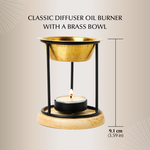 Fill your space with soothing scents using our diffuser oil burner—perfect for essential oils, aroma oils, and diffuser oils. This complete set includes a wrought iron burner, a brass bowl, a wooden coaster, a tea light candle, and a free 10ml Oud Diffuser Oil worth $6.5. Thoughtfully designed and easy to use, it brings effortless aromatherapy into any room.