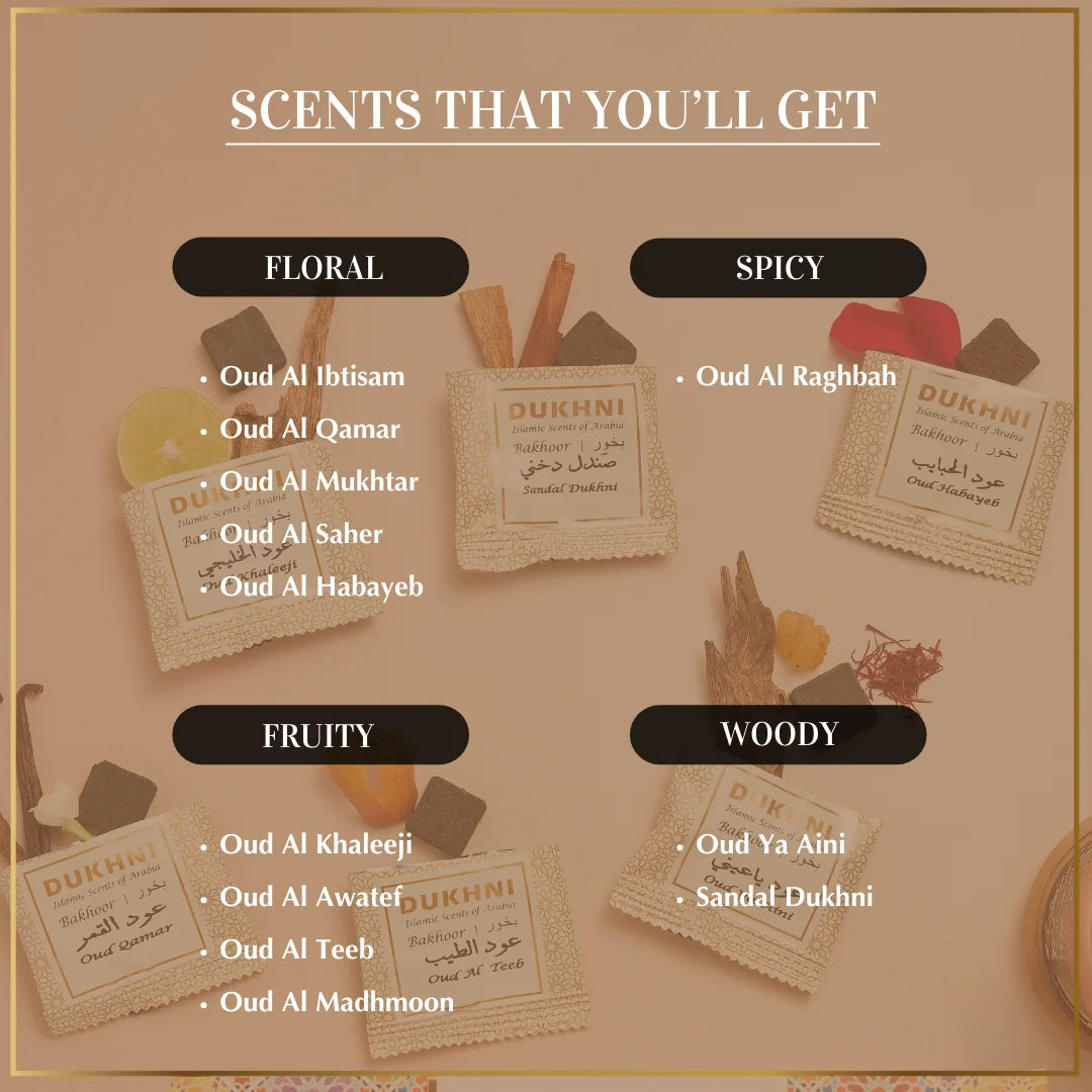 Save BIG with 20 pieces of bakhoor, Dukhni burner & 6ml of sandalwood
