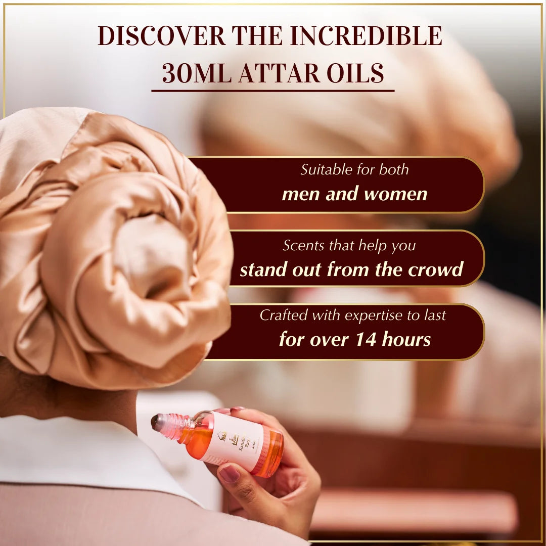 Get the best of both worlds with our Sandalia Rose Attar—one of our new launches and the finest Arabic perfume oils. This 30ml roll-on is crafted with premium, alcohol-free ingredients and offers over 14 hours of lasting fragrance. Elegant, long-lasting, and pure, it’s perfect for daily wear, special occasions, or gifting.