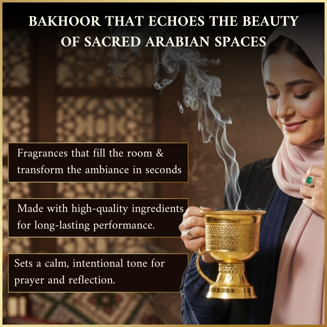 Adeni Bakhoor: Warm, mystical aroma combining rose, ylang-ylang, and white musk for an emotional, romantic scent.